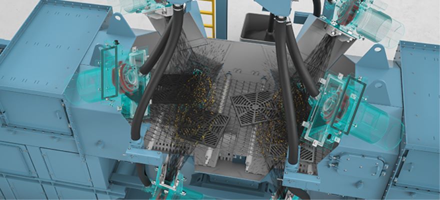 大家可以重點看看這種吊鉤通過式拋丸機的特點,基本上好一點的設備,拋丸量都很大,高拋射速度也很快,能夠有效地完成零件的清理工作,在很多領域都是能夠帶來比較大的幫助的。