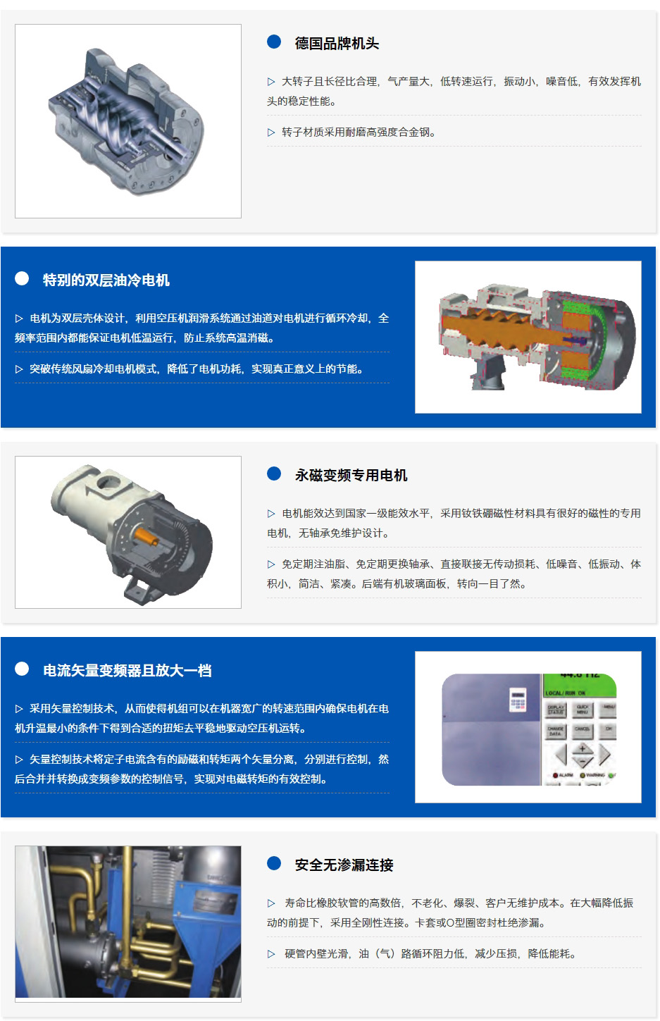 進(jìn)口軸承和潤(rùn)滑脂,確保機(jī)頭壽命和可靠性,壓縮空氣性能持久穩(wěn)定