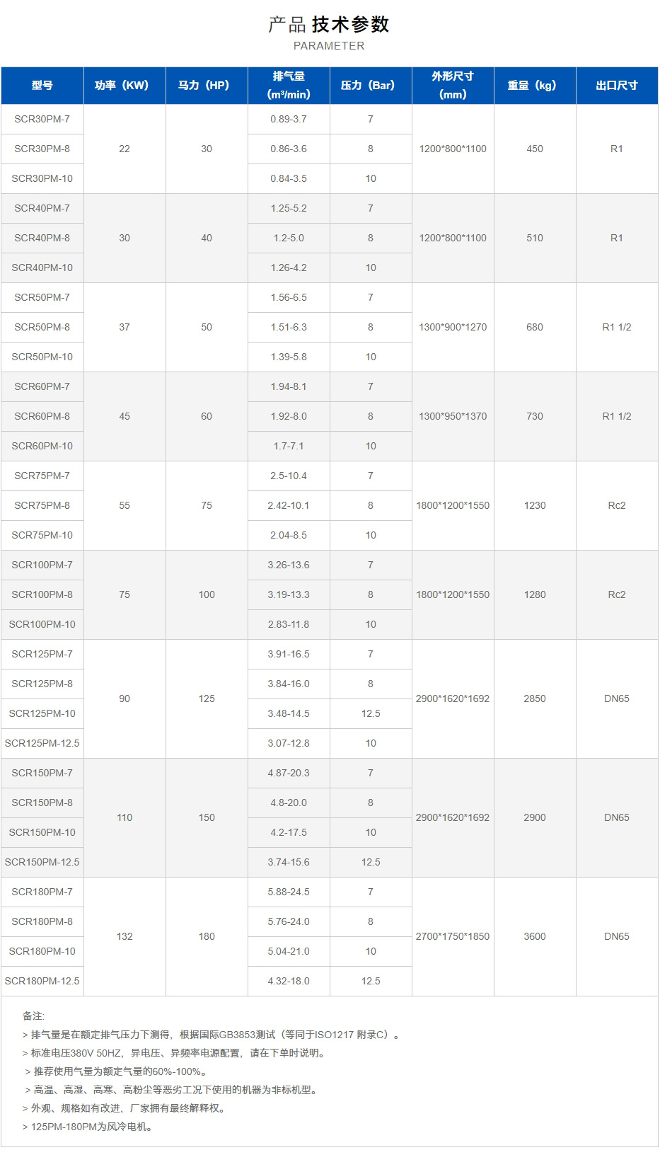 油冷:125PM-180PM風(fēng)冷